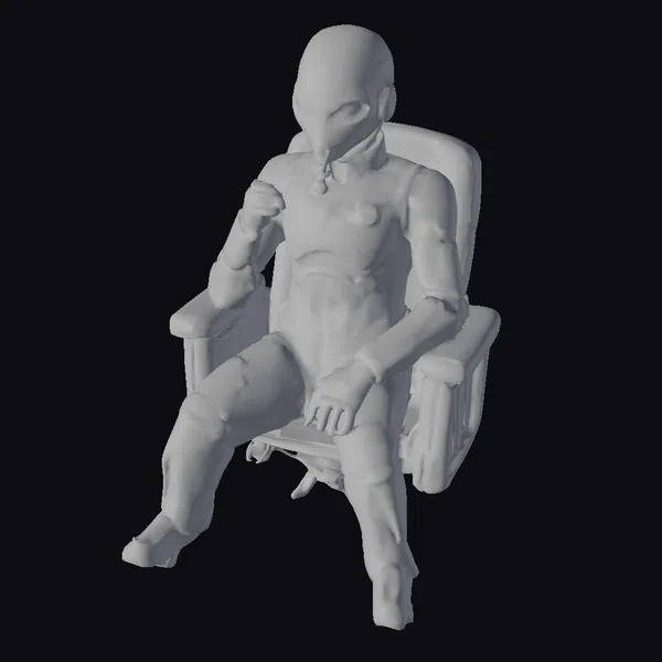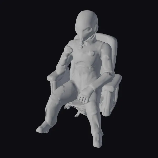 The Model “Alien Boy in Chair” is also available upon request in many other 3D formats, such as 3MF, BLEND, FBX, OBJ, USDZ and others, making it easy to integrate into your project.