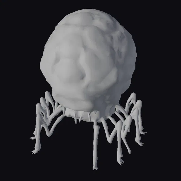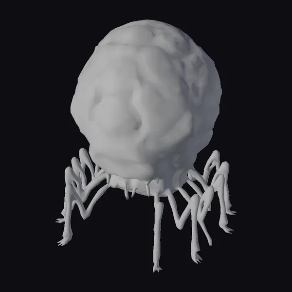 Perched on multiple twisted legs, this alien creature exudes an otherworldly aura. Its large, spherical body is a canvas of white and gray hues, adorned with numerous dark spots that seem to pulse with an eerie glow. The legs, long and slender, are a deep purple and end in sharp claws, giving the creature a menacing stance. The texture of the body is bumpy and irregular, adding to the creature’s alien appearance. This model is perfect for use in sci-fi games, animations, or as a design concept for futuristic projects. Its unique design and detailed features make it a standout addition to any 3D model collection.