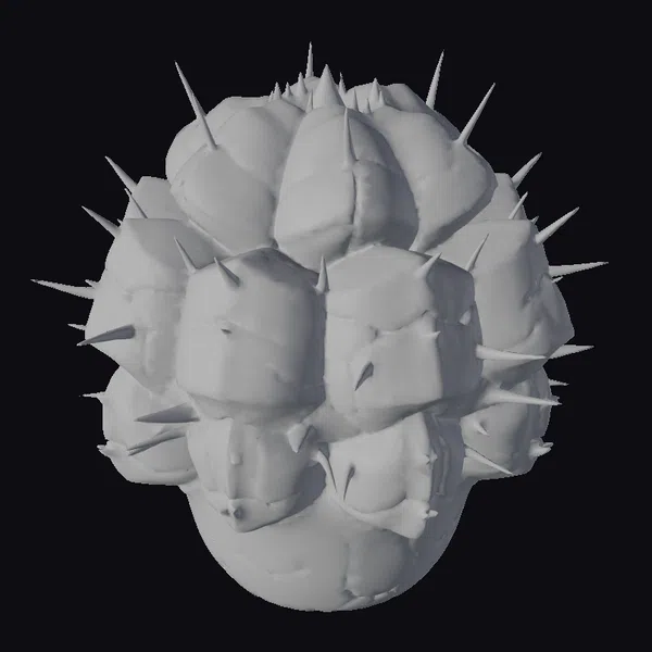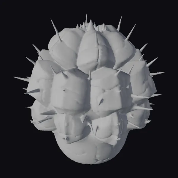 Perched atop a gnarled, earth-toned base, this alien cactus head towers with an air of malevolent presence. Its vibrant green, armor-plated surface is cracked and fissured, revealing glints of orange and red beneath. Jagged, metallic spines protrude from its bulbous segments, casting long shadows that accentuate its menacing appearance. This model is perfect for adding a touch of sci-fi horror to your 3D projects, whether you’re creating a haunted environment, a futuristic landscape, or a terrifying creature design. Its unique blend of cactus and alien features makes it an excellent choice for games, animations, or VR/AR experiences.
