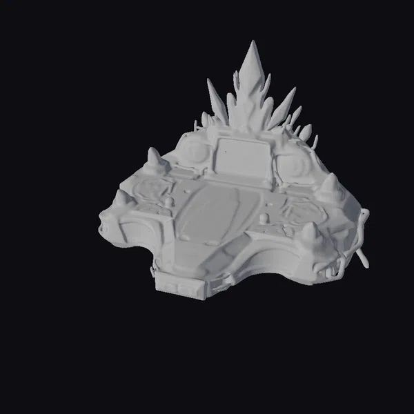 Perched atop a series of angular, metallic protrusions, the alien head appears to be an integral part of the control panel, its eyes glowing like embers as it surveys the surroundings. The panel’s surface is a complex array of buttons, dials, and screens, with a central blue display that seems to be the focal point of the device. The entire assembly is bathed in a soft, ethereal glow, as if the very technology itself is alive and humming with energy. This 3D model would be perfect for adding a touch of sci-fi flair to games, animations, or VR/AR experiences, and could also be used in design projects that require a futuristic, otherworldly feel.