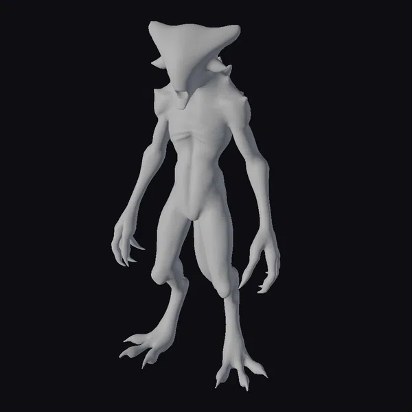 Standing tall with an imposing presence, this alien creature is meticulously crafted with a focus on detail and realism. Its body showcases a complex muscular structure under a sleek, almost metallic skin that shimmers with subtle texture, courtesy of the advanced heightmap technique used. The creature’s head, shaped like a pointed fin, adds to its extraterrestrial mystique, while its long limbs ending in sharp claws suggest a predator ready to strike. The model is perfect for projects requiring a high level of detail and realism, such as sci-fi games, animations, or virtual reality experiences. Its unique design and detailed features make it a standout asset for any sci-fi themed project.