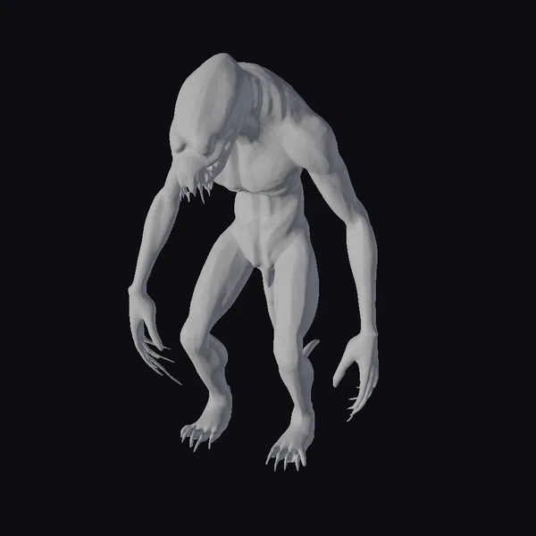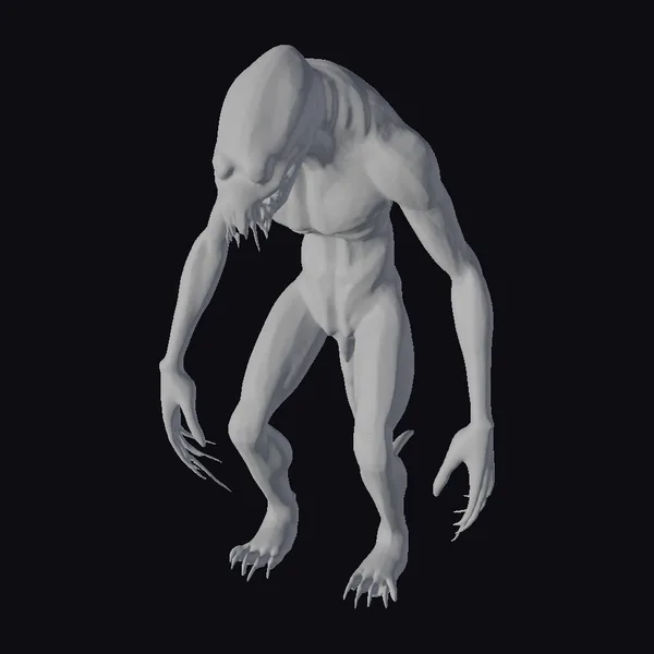 This ultra-realistic 3D model of an alien creature showcases intricate details, from the shimmering, mottled skin that reflects light to the muscular definition of its physique. The creature stands in a menacing pose, with sharp claws extended and pointed teeth bared. Its elongated head and large, black eyes seem to pierce through the darkness. The model’s realistic texture and lighting make it perfect for use in sci-fi games, horror animations, or as a design element in futuristic settings. The level of detail and realism achieved in this model makes it an excellent choice for professionals looking for high-quality 3D assets.
