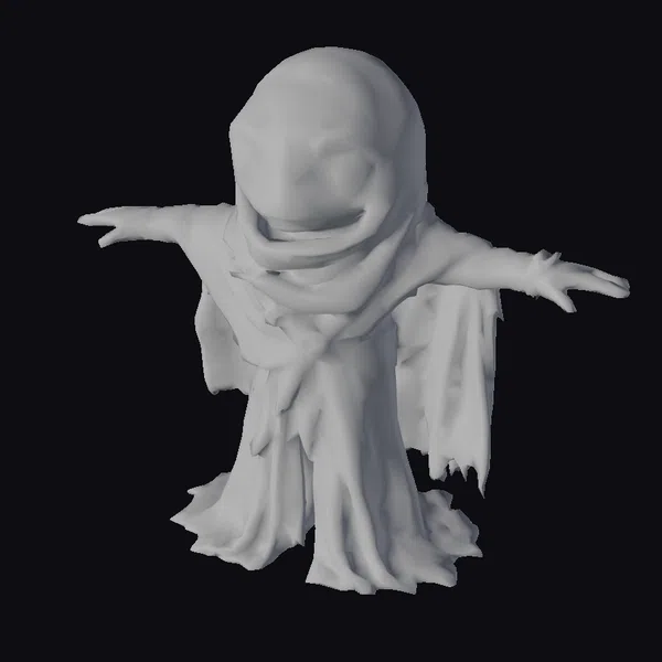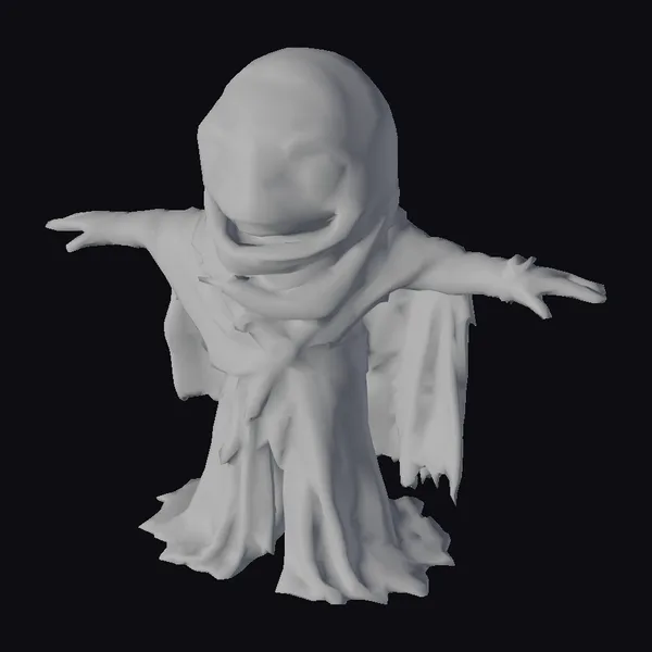 This intricately detailed alien desert creature model is posed with its arms outstretched, as if embracing the endless dunes of the desert. The model features a tattered, earth-toned robe with a hood that covers its head, leaving only its large, expressive eyes and wide smile visible. The robe’s texture and the creature’s skin have a weathered appearance, suggesting a life spent under the harsh desert sun. The model’s large eyes are a focal point, conveying a sense of wonder and friendliness. The intricate details of the robe, including the brown belt and tattered edges, add depth and realism to the model. This model is perfect for use in sci-fi projects, animations, or games that require a unique and captivating character. Its desert-inspired design and friendly demeanor make it an excellent addition to any project set in a fantastical or sci-fi world.