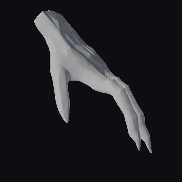 This alien hand model boasts an intricate, detailed design, with a focus on its semi-translucent, leathery skin that appears to glow from within. The three fingers are elongated and tapered, ending in sharp, claw-like nails that give the hand a menacing appearance. The pulsing, glowing network of veins underneath the skin adds an eerie, otherworldly effect. The hand’s pose, with fingers extended, suggests a sense of movement or gesture, making it perfect for use in sci-fi or fantasy projects, such as games, animations, or 3D prints. The model’s unique features and detailed textures make it an excellent choice for designers and artists looking to add an extraterrestrial element to their work.