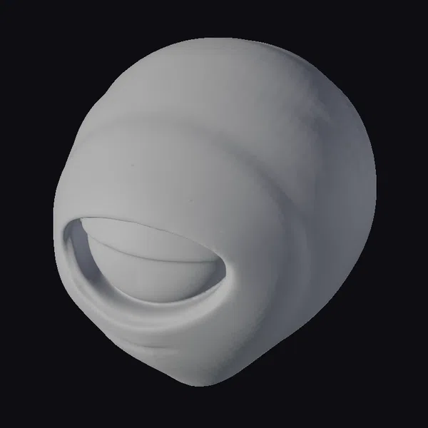 This intricately detailed alien head model showcases a striking blue eye, set against a backdrop of smooth, creamy white skin. The eye itself is a marvel of detail, with a bright blue iris and a subtle gradient of light and shadow that gives it a sense of depth and dimensionality. The surrounding skin is rendered in a high level of detail, with subtle texture and shading that suggests a sense of realism. The model’s proportions are perfectly balanced, with the eye taking center stage in a dramatic close-up. This model would be perfect for use in sci-fi games, animations, or designs where a futuristic, otherworldly feel is desired.