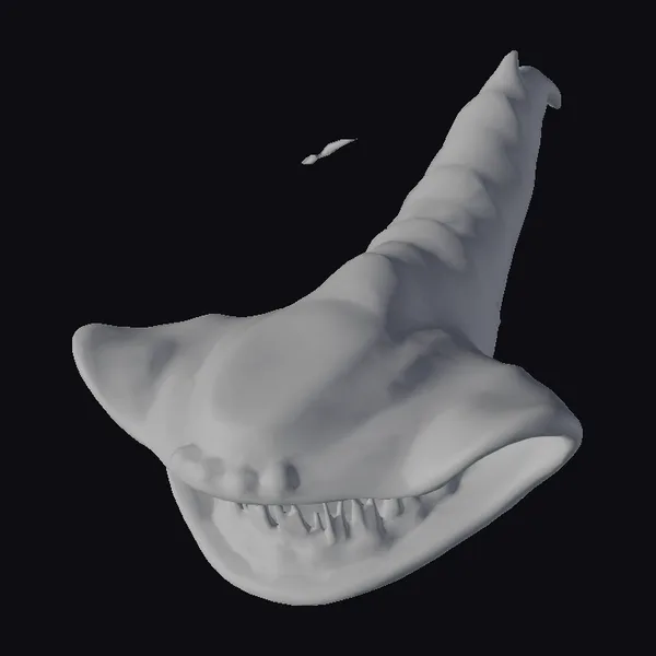 This intricately detailed alien head helmet boasts a predominantly dark color scheme with metallic undertones, accentuated by vibrant red spots that seem to glow with an eerie light. The mouth of the helmet is lined with sharp, gold-colored teeth, adding to its menacing appearance. The overall design is a masterclass in sci-fi horror, with a blend of industrial and organic elements that evoke a sense of unease. The helmet’s pose, with its ‘mouth’ open and ‘head’ tilted, suggests a sense of movement and aggression, making it an excellent choice for projects that require a dash of intergalactic terror. Whether you’re working on a game, animation, or VR experience, this model is sure to leave a lasting impression.