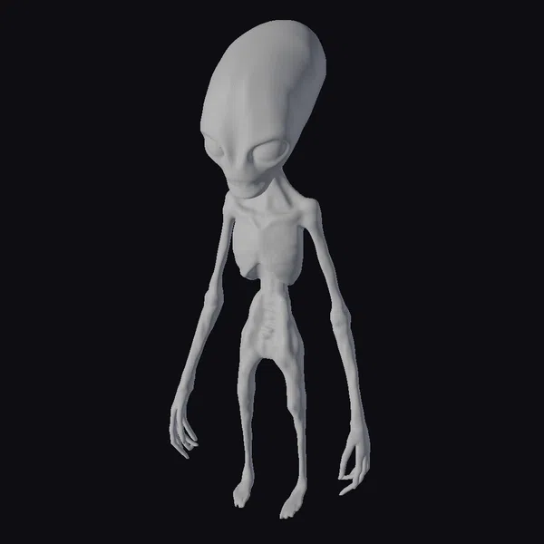 Standing tall with an imposing yet fragile appearance, this alien humanoid figure showcases intricate details such as visible veins and glowing internal organs through its translucent skin. The elongated head, characterized by a subtle green glow, contrasts with the predominantly blue and gray hues of its body. Its long limbs end in delicate-looking hands, adding to the creature’s ethereal beauty. This model is perfect for projects requiring a sci-fi character with a unique, extraterrestrial vibe, suitable for games, animation, film, and virtual reality applications.