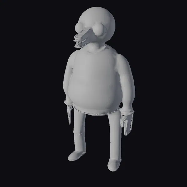 Detailed with a bulbous blue head, large expressive eyes, and a distinctive protruding nose, this alien character model boasts a unique appearance. The model features a textured orange sweater with brown accents, paired with brown pants and shoes, highlighting its quirky fashion sense. Its blue hands add a pop of color to the overall design. Ideal for animations, games, or VR/AR experiences seeking a friendly, otherworldly character. The model’s proportions and details make it suitable for close-up scenes or character-driven narratives.