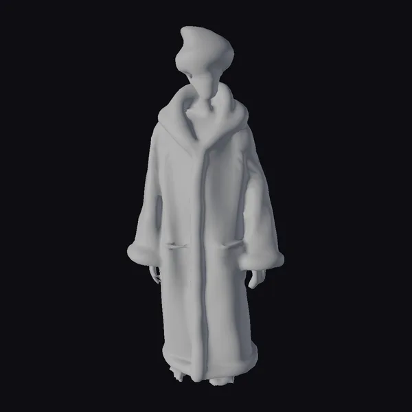 Standing tall with an otherworldly presence, this stylized alien dons a festive Santa suit that is both eye-catching and detailed. The suit itself is a rich red color with generous white fur trim along the coat’s edges, pockets, and hat, giving it a luxurious feel. The alien’s skeletal face, with its sharp cheekbones and empty eye sockets, provides a striking contrast to the jolly appearance of the Santa attire. The greenish hue of the alien’s skin adds to the sci-fi mystique, making this model a unique addition to any collection or project. Its potential uses span a wide range of creative fields, including game development, animation, virtual reality experiences, and print-on-demand products.