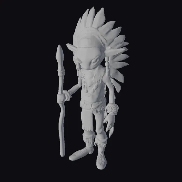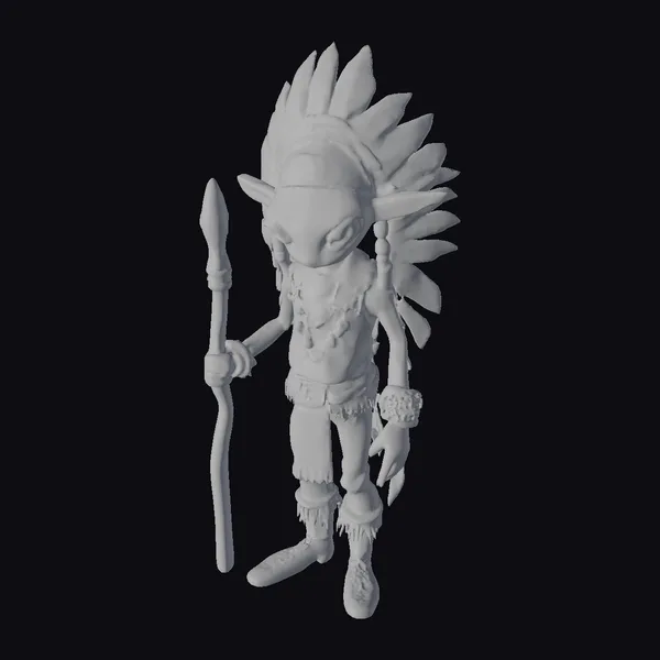 This striking model showcases an alien dressed as an Indian chief, blending science fiction with native cultural elements. The alien’s green skin provides a unique canvas for the traditional Indian attire, including a headdress that boasts a dazzling array of colorful feathers. The model’s red eyes add an air of mystery and otherworldliness, while its pose, holding a spear, suggests readiness for action. The intricate details, from the texture of the alien’s skin to the fringe on its leather outfit, make this model a standout. Its potential applications span across gaming, animation, and design, where a character with a blend of sci-fi and tribal elements is needed.