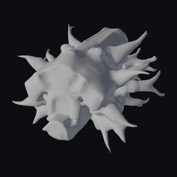 Perched menacingly, this intricately detailed, silver-gray nesting pod appears to be a fusion of organic and mechanical elements, complete with a multitude of sharp, dagger-like protrusions. The pod’s surface features a complex arrangement of panels, vents, and gold-accented details, suggesting a highly advanced, alien technology. A warm, golden glow emanates from within, casting an ominous light on the surrounding environment. This 3D model would be perfect for adding a touch of dark, sci-fi flair to games, animations, or design projects, particularly those set in futuristic, extraterrestrial environments.