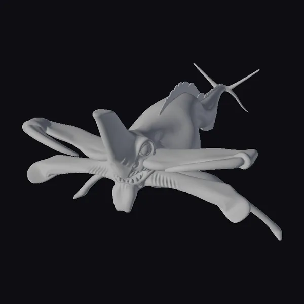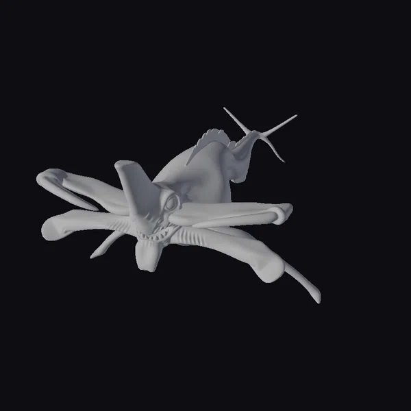 Perched menacingly, this alien creature appears to be emerging from the darkness, its body a mass of twisted, metallic limbs and bulging, red-hued organs. The creature’s face is a twisted visage of sharp teeth and cold, calculating eyes, giving the impression that it’s sizing up its next victim. Its tentacles stretch out like ghostly fingers, as if beckoning or threatening. With its eerie appearance and foreboding presence, this creature is perfect for adding a touch of sci-fi horror to any project. Imagine it looming over a desolate, space-station corridor or lunging at a hapless space explorer. Its versatility makes it ideal for use in games, animation, or 3D printing.