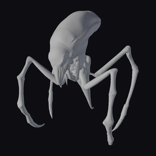 Perched aggressively on its hind legs, this fearsome alien spider creature seems poised to strike at any moment. The intricate texture of its dark, armored body appears almost organic, yet undeniably extraterrestrial. Glowing red eyes burn with an inner fire, casting an eerie light on the surrounding environment. Eight long, spindly legs splay out in all directions, each tipped with a razor-sharp claw. The creature’s maw is a nightmarish spectacle of jagged teeth and chitinous ridges. This 3D model would be perfect for adding a touch of sci-fi horror to games, animations, or 3D prints. Its menacing stance and terrifying appearance make it an excellent choice for projects requiring a formidable, otherworldly creature.