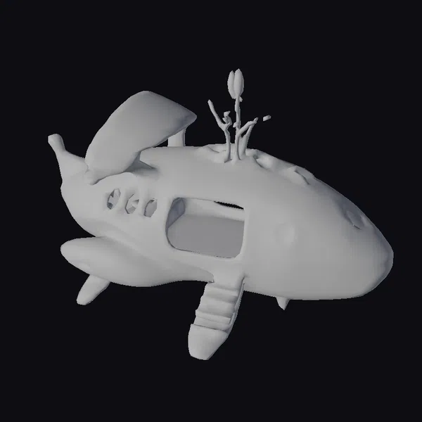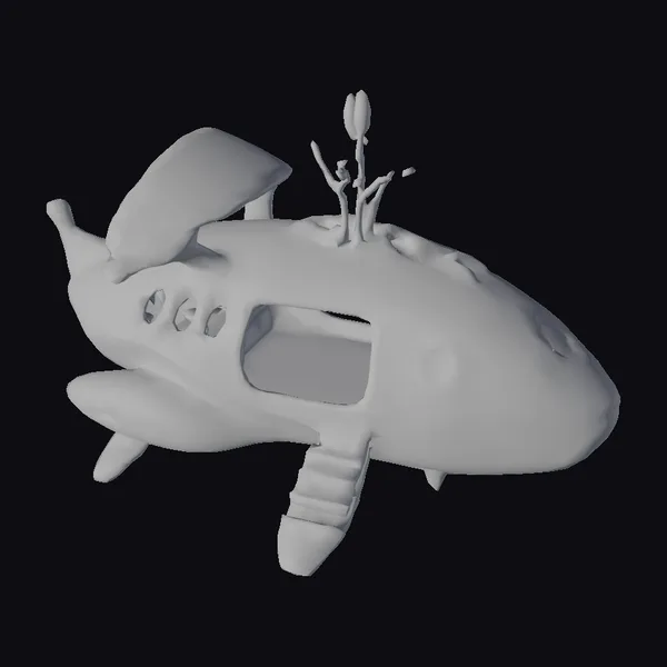 This extraordinary spaceship model showcases a blend of natural and synthetic elements, featuring a body crafted from what appears to be alien wood, complemented by metallic components and vibrant blue details that suggest advanced technology. The ship’s design includes a distinctive wing structure and a cockpit that appears to be open, inviting exploration. A small plant sprouts from the top, adding to the model’s whimsical and extraterrestrial charm. The blend of earthy tones with futuristic elements makes this model perfect for projects aiming to capture a sense of adventure and exploration in sci-fi settings. It can be used in games, 3D printing, virtual reality, animation, and design projects to add a touch of the unknown.