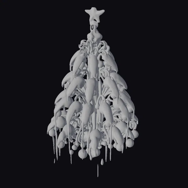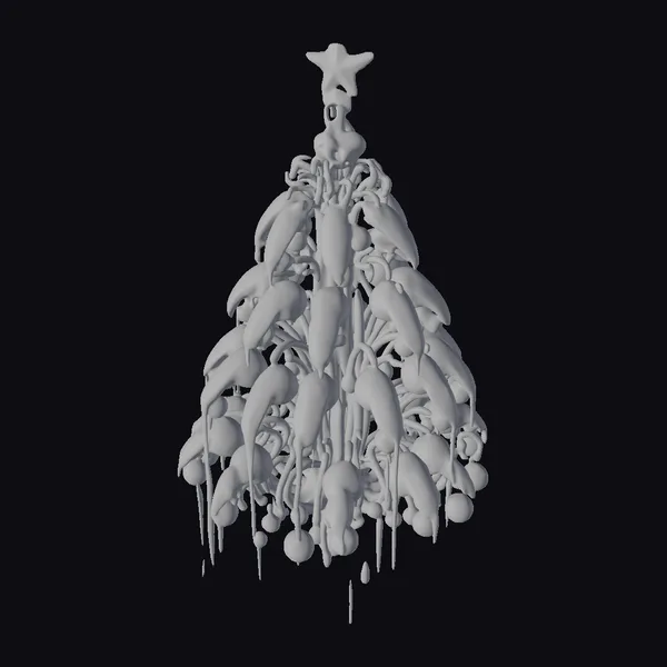 This intricately detailed 3D model presents a Christmas tree like no other, constructed from a multitude of dark, slimy alien xenomorphs. The tree’s form is discernible through the mass of twisted, elongated bodies that make up its structure, with each xenomorph meticulously crafted to convey a sense of movement and life. The tree’s surface appears wet and slick, covered in a translucent slime that catches the light, with drips of the same slime pooling on the ground below. A pink star tops the tree, adding a jarring contrast to the otherwise dark, horror-tinged scene. The model’s textures and lighting are of exceptionally high quality, capturing the glossy sheen of the xenomorphs’ bodies and the reflective quality of the slime. Ideal for use in games, 3D printing, VR/AR experiences, animation, and design projects that call for a unique, eye-catching element.