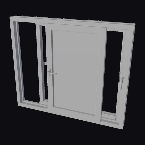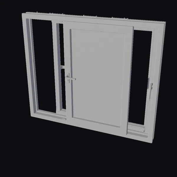 Positioned at a slight angle, the aluminum casement window frame showcases its detailed structure, from the metallic gray finish to the subtle hints of texture on the frame’s surface. The central glass panel, flanked by two open sections, allows for a dynamic interplay of light and shadow. This model is meticulously crafted with precision, featuring a sturdy frame, hinges, and a latch, making it an ideal choice for architects, designers, and 3D artists looking to add realistic elements to their projects. Whether for architectural visualization, interior design, or 3D printing, this model brings a touch of modern sophistication to any scene.