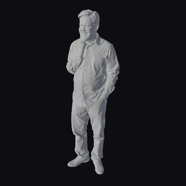 This meticulously crafted 3D model presents a realistic portrayal of an American comedian, poised as if mid-performance. The model’s facial features are finely detailed, capturing a warm, inviting smile that suggests a connection with the audience. The texture of the red leather jacket appears lifelike, complementing the smooth white shirt and the slight sheen on the black pants. The brown shoes add a touch of earthiness to the overall vibrant appearance. The comedian’s pose, with one hand confidently placed in his pocket and the other gripping the microphone, conveys a sense of ease and professionalism on stage. This model is perfect for projects requiring a realistic human character, especially in contexts like game development, animation, virtual reality experiences, or architectural visualizations where a human element is essential.