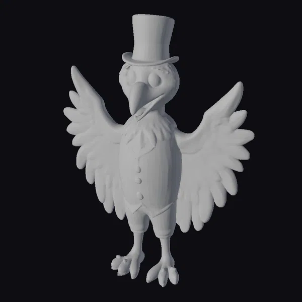Standing tall with its wings outstretched, this charming cartoon eagle showcases intricate details such as a red, white, and blue striped vest adorned with golden buttons, a star-spangled emblem on its chest, and a matching top hat. The eagle’s white head and neck contrast beautifully with its brown and blue wings, yellow beak, and legs. The model’s textures and colors are meticulously balanced to evoke a sense of patriotism and friendliness. Ideal for projects requiring a symbol of American spirit, such as animations, games, or educational materials, this model is sure to add a touch of whimsy and charm.