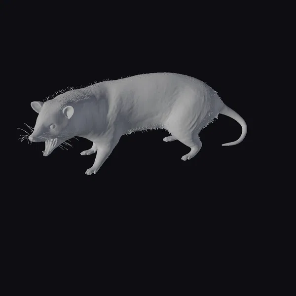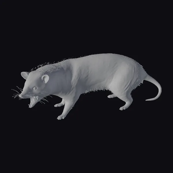 Detailed with a mix of gray and brown fur, this 3D model of an American Opossum captures the animal in a lifelike pose, complete with a snarling expression and sharp teeth. The long whiskers and prehensile tail add to the realism, making it suitable for projects requiring a high level of detail, such as wildlife documentaries, educational materials, or realistic animations. The model’s texture and pose make it versatile for various applications, including games, virtual reality experiences, and print media.