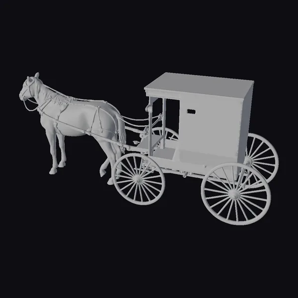 Positioned in a stately pose, the horse’s muscles ripple beneath its shiny coat as it prepares to move. The buggy’s black body and roof are complemented by large wheels with thin spokes, adding to its authentic look. The harness and reins are detailed with precision, showcasing the craftsmanship that went into creating this model. The Amish horse and buggy would be perfect for scenes requiring a historical or traditional touch, such as in animations, games, or architectural visualizations. Its detailed textures and realistic proportions make it an excellent choice for designers and artists seeking authenticity.
