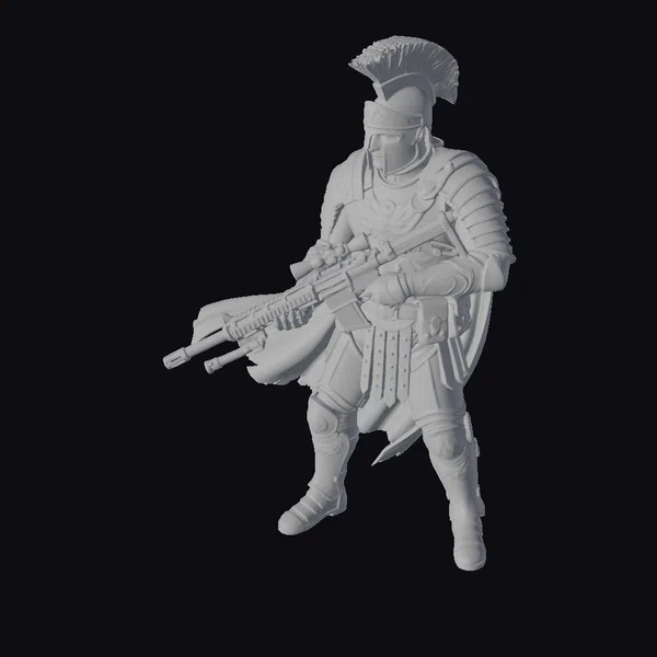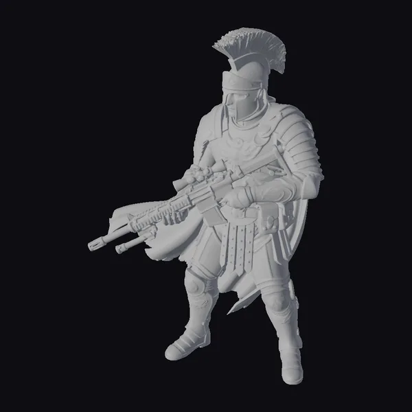Standing proudly in a powerful stance, this meticulously crafted Anachonic Roman Legionary showcases an intriguing blend of ancient and modern elements. The legionary’s metallic armor glistens with a subtle sheen, accentuated by the dynamic folds of the flowing red cape. The warrior’s gaze is fixed intently on the horizon, grasping a sleek firearm with a firm grip. This stylized character model boasts exceptional detail, from the textured armor plating to the weathered leather straps. Ideal for use in games, 3D printing, VR/AR experiences, animation, and design projects, this model is sure to add a touch of epic flair to any creative endeavor.