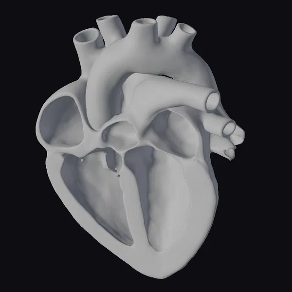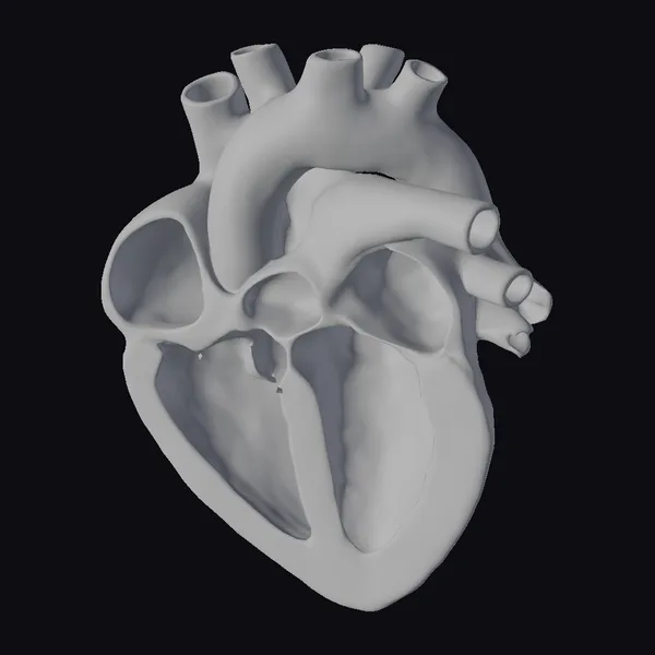 In precise detail, this 3D model of the human heart showcases its intricate anatomy, featuring a cutaway section that reveals the inner workings of this vital organ. The heart’s outer surface is rendered in a realistic, flesh-like texture, while the inner chambers and valves are accurately depicted in a detailed, high-resolution model. The aorta, pulmonary arteries, and veins are prominently displayed, providing a comprehensive view of the cardiovascular system. This model is perfect for educational purposes, medical simulations, or as a reference for artists and designers seeking to accurately represent the human heart. Its realistic appearance and detailed structure make it an invaluable resource for anyone seeking to understand or depict the human heart.