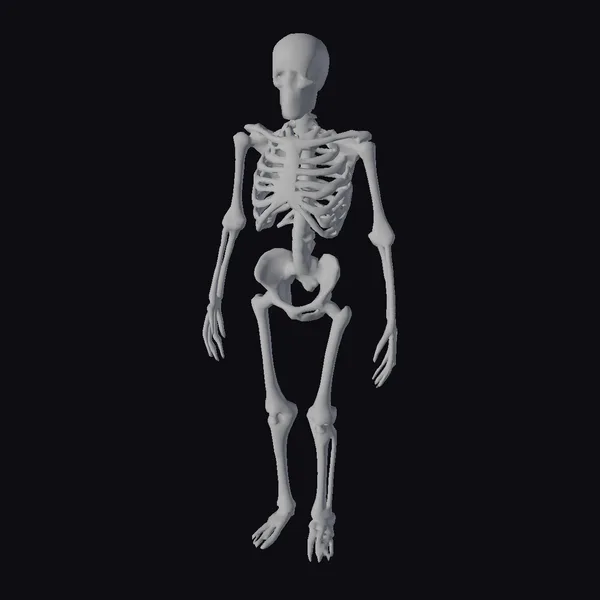 Rendered in exquisite detail, this anatomical human skeleton model stands poised, offering a comprehensive view of the human body’s skeletal structure. The transparent bones, tinged with subtle yellow and brown hues, suggest a lifelike appearance, as if illuminated from within. The model’s pose, with arms relaxed by its sides and legs straight, invites a thorough examination of the skeletal system’s intricacies. Ideal for educational projects, medical simulations, or artistic studies, this model provides a rich foundation for exploring human anatomy. Its high level of detail and realistic representation make it a valuable asset for anyone seeking to understand or depict the human skeleton with accuracy.