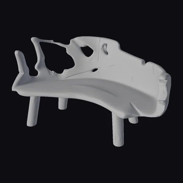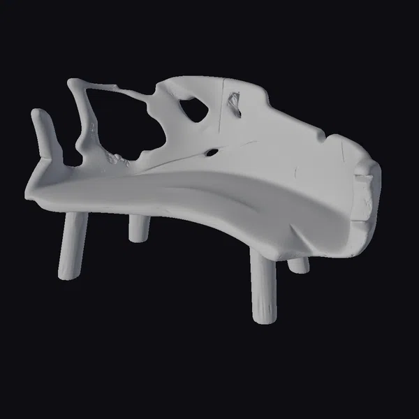Perched on four cylindrical supports, this anatomical skull fragment presents a detailed study in bone texture and structure. The tan and beige hues evoke a sense of aged bone, while the realistic rendering invites a closer look at the intricate details of human anatomy. The model’s surface is a map of cracks, holes, and ridges, offering a comprehensive view of a skull in a state of partial disassembly. Ideal for medical simulations, educational materials, or artistic projects requiring a high level of anatomical accuracy.