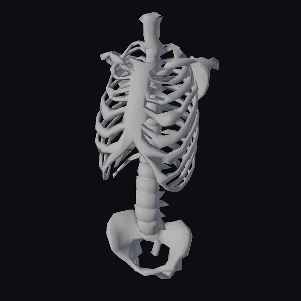 Positioned against a clean white backdrop, the skeletal torso model stands as a testament to human anatomy. The detailed rendering captures every nuance, from the curvature of the ribs to the intricate arrangement of the vertebrae. The shoulder bones and collarbones are meticulously defined, offering a comprehensive view of the upper body’s skeletal makeup. This model serves as an invaluable resource for educational purposes, 3D printing, and artistic studies. Its realistic depiction makes it an ideal tool for those delving into medical studies, game development, or animation projects requiring a precise anatomical reference.