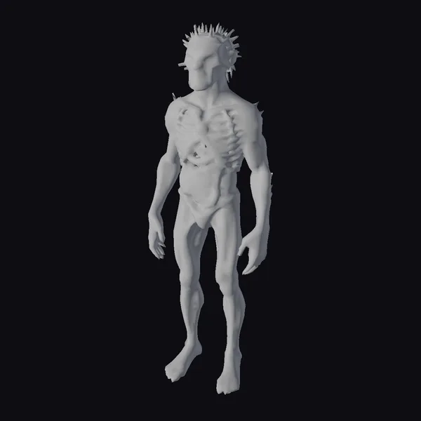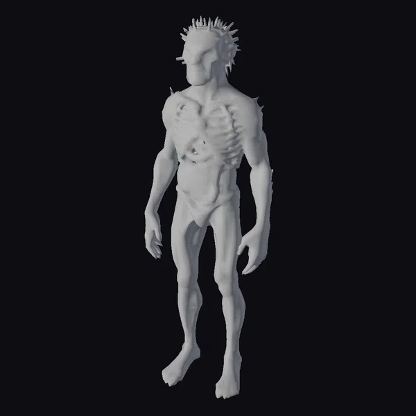 Standing tall with a haunting presence, the Anatomy of Fear model presents a meticulously detailed zombie with its internal anatomy on full display. The figure boasts a realistic depiction of human muscles, skeletal structure, and vital organs such as the brain and heart, all encased in a grayish, decaying flesh with visible spikes. The model’s pose, with arms hanging loosely by its sides, adds to the eerie atmosphere. Textured with precision, the model’s surface details, from the rugged skin to the intricate organ structures, make it an exceptional choice for projects requiring a blend of horror and educational elements. Ideal for use in medical simulations, horror games, animations, or as a striking visual aid in educational materials.