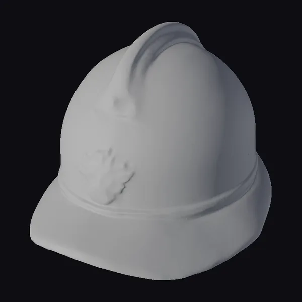 Perched atop a sturdy base, the helmet’s rounded crown is accentuated by a raised crest running along its center, evoking the proud tradition of ancient warriors. The surface, rendered in a realistic stone texture, appears worn from countless battles. A small, intricately designed emblem adorns the side, adding a touch of authenticity to this meticulously crafted 3D model. Ideal for historical reenactments, educational projects, or cinematic productions seeking to transport audiences to a bygone era, this model promises to bring an air of authenticity and gravitas to any scene.