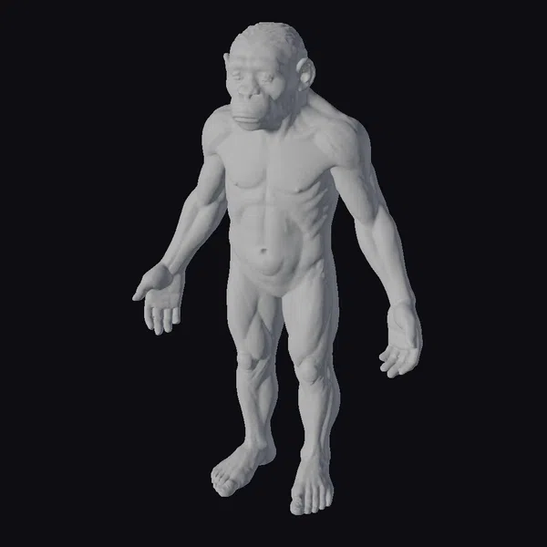 The Model “Ancient Ape Standing” is also available upon request in many other 3D formats, such as 3MF, BLEND, FBX, OBJ, USDZ and others, making it easy to integrate into your project.