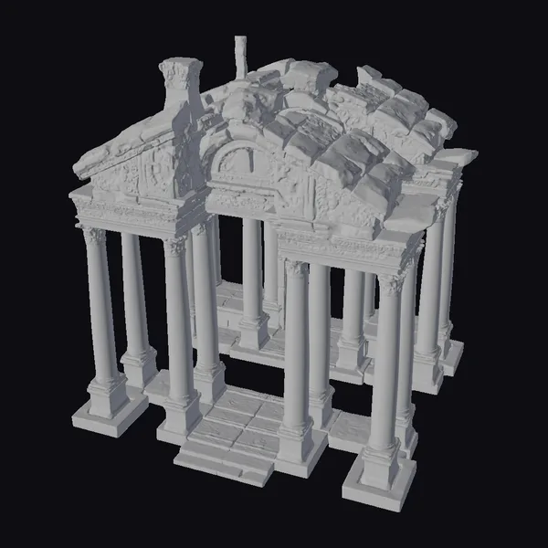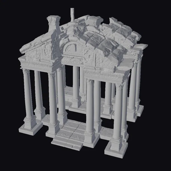 Perched delicately on the brink of collapse, the ancient arch presents a captivating blend of decay and grandeur. The structure boasts a series of imposing columns that once proudly supported its majestic roof, now partially caved in, leaving behind a hauntingly beautiful silhouette. The model’s surface is rich with textures that mimic the natural wear of time – from the roughness of the stone to the smoothness of the worn columns. The arch’s design speaks to a classical architectural style, reminiscent of ancient civilizations. Ideal for use in historical reconstructions, architectural visualizations, or as a compelling backdrop for animations and games, this model invites users to explore the narratives hidden within its crumbling stones.