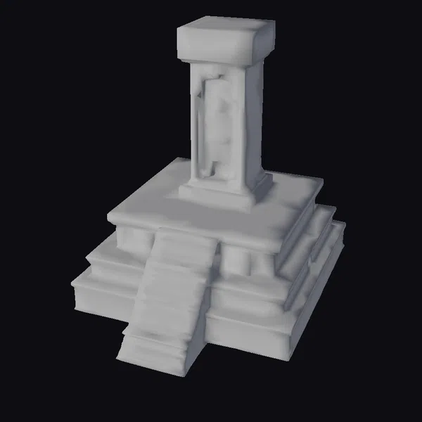 Crafted with precision, this ancient Aztec temple podium stands as a testament to the architectural prowess of the Mesoamerican civilization. The structure features a stepped pyramid base, each level meticulously carved with geometric patterns and hieroglyphics that tell stories of a rich cultural heritage. At its center, a tall, slender pillar rises, adorned with the figure of an Aztec deity, adding a layer of mystique and historical significance. The podium’s surface is a tapestry of textures, from the smooth stone to the detailed carvings, inviting the eye to explore every nook. Ideal for use in historical reconstructions, educational projects, or as a unique decorative piece, this model brings the grandeur of Aztec architecture to your digital projects or physical space.