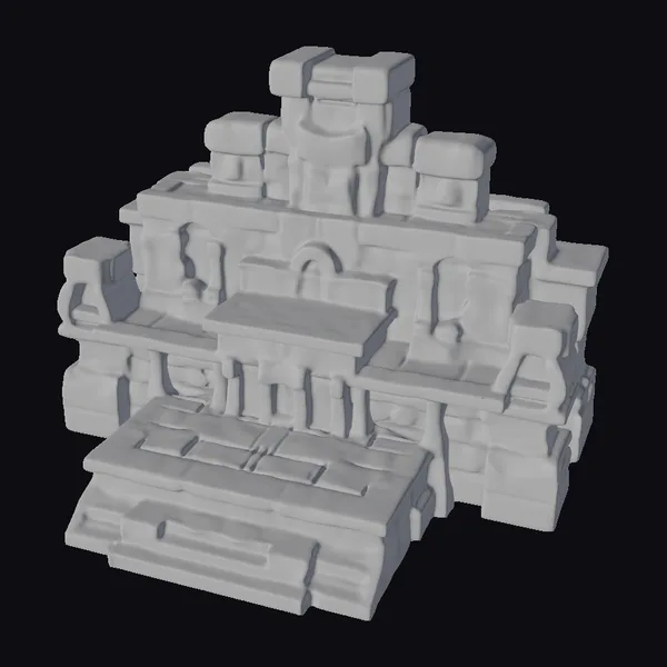 Perched atop a stepped base, the temple’s imposing structure rises with precision-cut stone blocks, adorned with intricate carvings that tell stories of a long-lost civilization. The stylized design balances realism with artistic flair, making this model perfect for use in games, 3D printing, VR/AR experiences, animation, and architectural design. Every detail, from the weathered stone surfaces to the ornate patterns, invites exploration and discovery.
