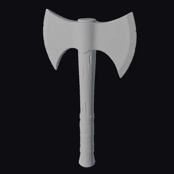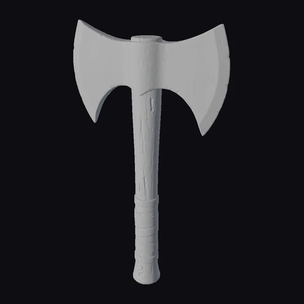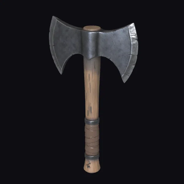 Gaze upon the intricate details of this ancient battle axe, where every curve and groove tells a story of battles past. The metal head, with its distinctive double-edged design, seems to gleam with a fierce inner light, as if the very essence of combat has been distilled into its form. The handle, crafted from sturdy wood and reinforced with worn leather wrappings, fits comfortably in the hand, urging the wielder to take up the mantle of a legendary warrior. Whether destined for a game, animation, or architectural visualization, this battle axe is poised to leave a lasting impression. Its imposing presence commands attention, drawing the eye to its rugged beauty and battle-hardened demeanor.