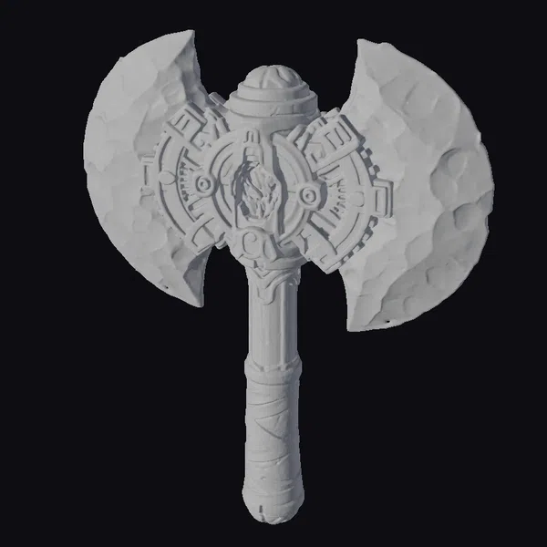 Behold the Ancient Battle Axe Artifact in all its glory, posed majestically against a pristine white backdrop. The axe’s stone blades, a deep grey hue, are textured to resemble the ruggedness of a battle-worn surface. The golden core, adorned with a glowing yellow gemstone, pulses with an otherworldly energy. Intricate etchings and patterns weave around the central gemstone, adding to the axe’s mystique. The handle, wrapped in a sturdy leather cord, appears worn from countless battles. This 3D model is perfect for use in games, animations, or 3D printing, offering a level of detail that will transport your audience to a realm of fantasy and adventure.