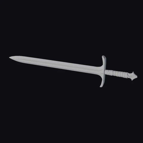 In a heroic pose, the ancient battle sword stands ready, its long, slender blade gleaming with a subtle sheen. The hilt, wrapped in worn leather, fits comfortably in the hand, while the silver emblem on the pommel catches the eye. As the light hits the blade, its weathered texture seems to come alive, telling tales of battles past. Whether for a game, 3D print, VR/AR experience, animation, or design project, this sword model is sure to add a touch of authenticity. Its realistic details, from the sharp edge to the battle-worn surface, make it an excellent choice for any creative endeavor.