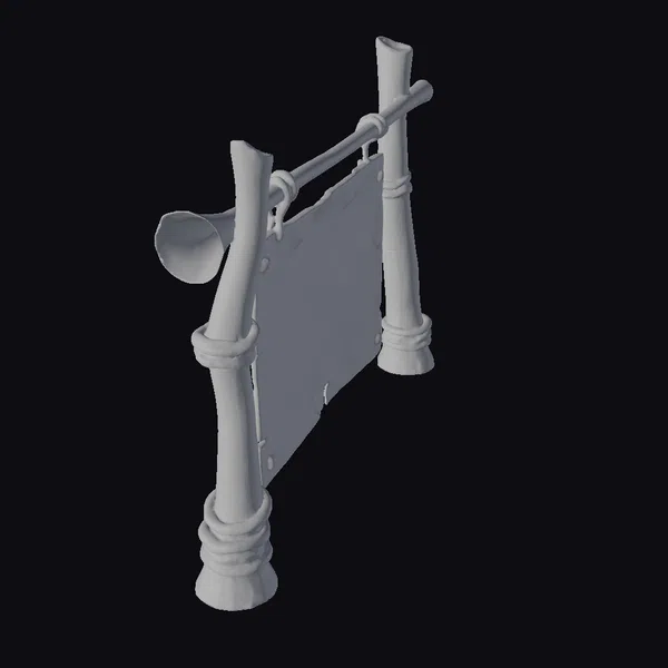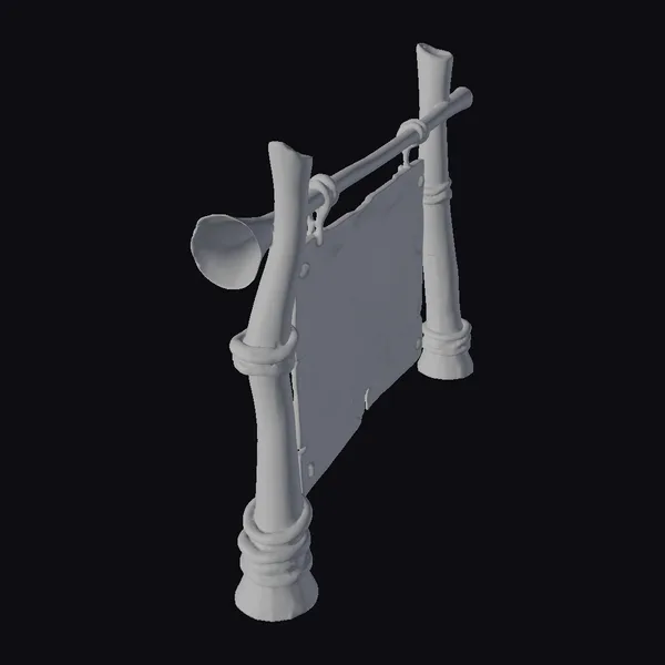 Crafted from aged animal bone, this billboard’s frame is meticulously etched, showcasing a blend of ancient craftsmanship and macabre artistry. Suspended by worn, natural rope, the sign’s surface features subtle, red markings that seem to glow with an otherworldly light. The bone’s weathered texture, complete with visible signs of wear and tear, adds to the billboard’s mystique. Positioned at an angle, the model invites the viewer to ponder its origins and purpose. Ideal for use in fantasy games, animations, or designs seeking a touch of the ancient and mysterious, this 3D model brings a unique element to any project.