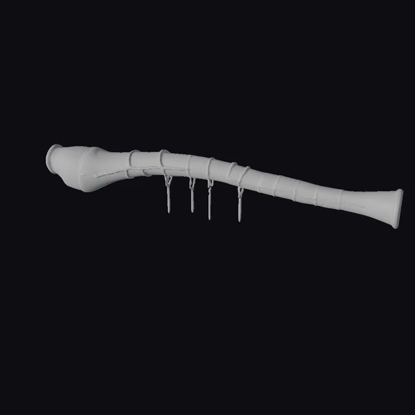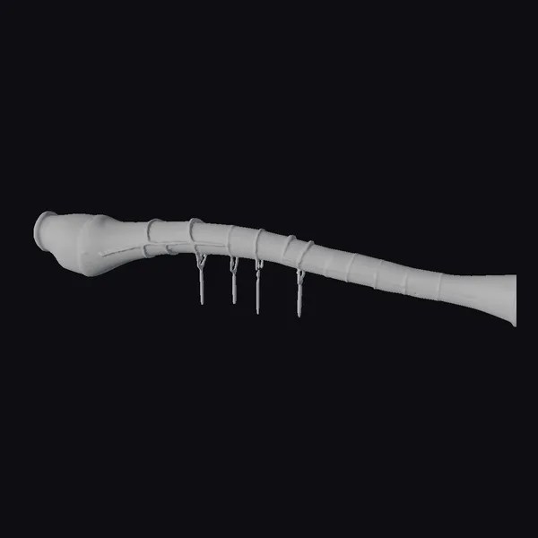 Crafted from the rib of an unknown colossal creature, this ancient bone flute exudes an aura of mysticism. Its elongated body, wrapped with metallic bands and etched with deep grooves, speaks to a craftsmanship born from both utility and artistry. The flute’s surface texture suggests age and use, with a patina that hints at centuries of handling. As an instrument, it promises a sound that is as haunting as it is beautiful. For creators, this model offers a unique asset for projects requiring an element of ancient mystique, suitable for games, animations, or virtual reality experiences seeking to transport audiences to forgotten eras.