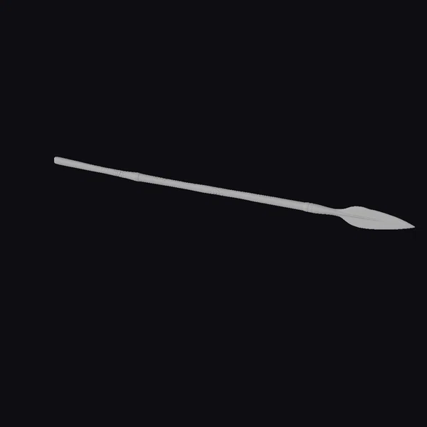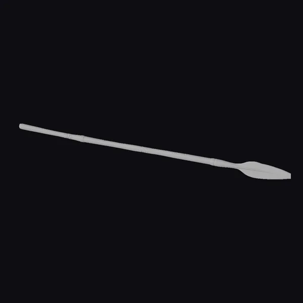 In a pose that suggests readiness, the spearhead is angled sharply, its broad, flat tip a testament to its utility in hunting and combat. The long, slender shaft, slightly thicker at the base, tapers smoothly to the metal head, showcasing a craftsmanship that balances elegance with lethality. Textures that mimic the natural wear of bronze over centuries add depth, while the lighting highlights the metallic sheen, bringing out the subtle nuances in the bronze’s coloration. This spear would find its place in historical reconstructions, video games set in ancient times, or as a detailed prop in film and animation projects. Its detailed design and realistic appearance make it an asset for any project aiming for historical accuracy or a touch of the ancient world.