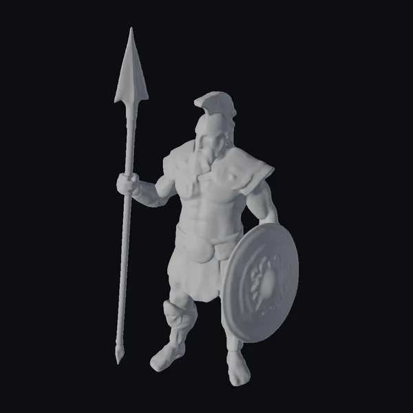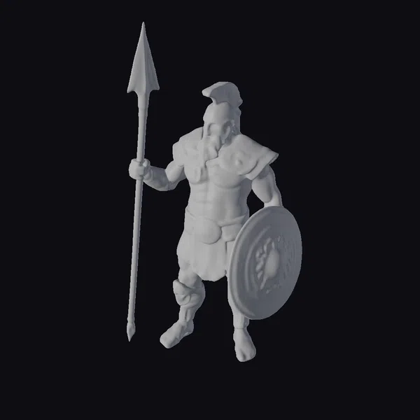 Detailed with precision, this bronze warrior model showcases intricate textures and realistic proportions. The armor, polished to a brilliant shine, reflects light and seems almost lifelike. The warrior’s pose, with spear in hand and shield at the ready, captures a moment of anticipation before battle. The model is highly detailed, from the muscles beneath the armor to the sharp point of the spear. Ideal for historical or mythological scenes in games, animations, or designs, this model brings an authentic ancient warrior to any project.