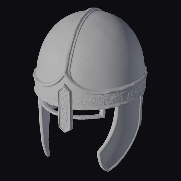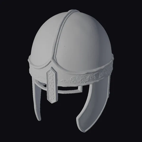 The Ancient Buckler Helmet stands proudly, its dome-shaped crown divided by a central ridge, with a sturdy nasal guard and curved cheek plates that evoke a sense of formidable protection. The surface is adorned with etched patterns that dance along the brow, hinting at the craftsmanship of a bygone era. As light catches its metallic form, the helmet seems to radiate an aura of resilience, as if it has witnessed countless skirmishes on the battlefield. Ideal for historical reconstructions, gaming environments, or cinematic projects, this model brings an air of authenticity to any scene. Its detailed design makes it perfect for 3D printing, animation, or virtual reality applications.
