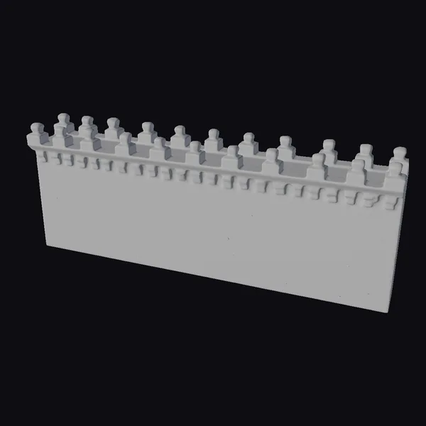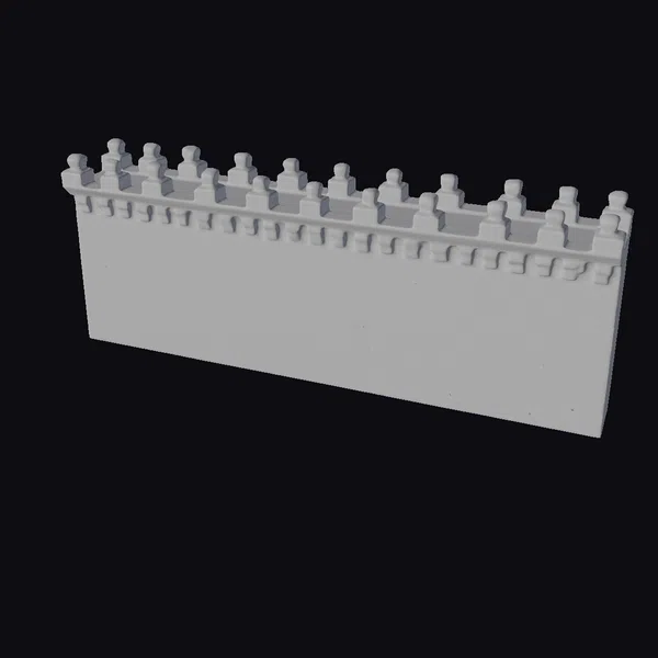 Crafted with meticulous attention to detail, this 3D model of an ancient castle wall section presents a visually stunning representation of medieval architecture. The wall’s foundation is composed of large, rough-hewn stone blocks, which gradually give way to more refined, smaller stones towards the top. The surface texture is remarkably realistic, with visible signs of weathering, including cracks, moss growth, and subtle color variations. The battlements are adorned with crenellations, adding a touch of authenticity to the overall design. A sturdy wooden door, complete with intricate carvings, serves as a focal point, while the surrounding stonework appears worn and battle-hardened. This model is perfect for use in games, animations, architectural visualizations, or 3D printing projects, offering a high level of detail and realism.
