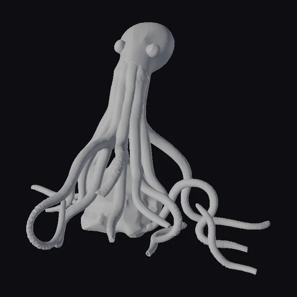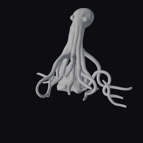 Perched atop a subtle, wavy base, the cephalopod’s body undulates with a mesmerizing, pearlescent glow. The model’s intricate texture captures the delicate, almost translucent quality of its skin, gradating from deep blues and greens to luminous, opalescent whites. Eight long, curved tentacles sprawl outward, each adorned with suckers that seem to shimmer like wet, dark jewels. As the creature appears to shift its gaze, its large, rounded eyes seem to hold a deep, ancient wisdom. This 3D model would be perfect for adding a touch of Lovecraftian horror to games, animations, or 3D prints. Its eerie beauty and intricate details make it an excellent choice for artists and designers seeking to craft immersive, fantastical worlds.