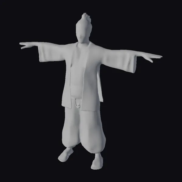 In a pose that speaks of anticipation and balance, this young deckhand from an ancient Chinese merchant ship stands ready for action. His T-pose highlights the detailed traditional clothing, including a light grey robe with wide sleeves and loose-fitting pants, complemented by tan accents around his waist. The model’s hair is styled in a neat bun atop his head, adding to his youthful and vibrant appearance. The slightly stylized yet realistic approach to his features and attire makes him an excellent choice for projects seeking an authentic historical or mythological character. Whether for games, animation, print, VR/AR experiences, or design projects, this model offers a rich foundation for storytelling. His detailed textures, realistic proportions, and the emotional neutrality of his facial expression provide a versatile canvas for creators.