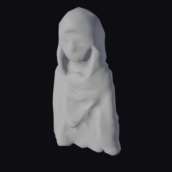 Positioned in a contemplative stance, the statue showcases a figure draped in a hooded cloak, its face serene and enigmatic. The moss-covered surface suggests years of exposure to the elements, with the green hue of the moss contrasting against the stone’s natural tones. The model’s intricate details, from the folds of the cloak to the serene expression, are subtly defined, allowing for a range of interpretations. Ideal for use in historical, mythological, or fantasy contexts, this model can enhance scenes in games, animations, or architectural visualizations, adding depth and narrative.