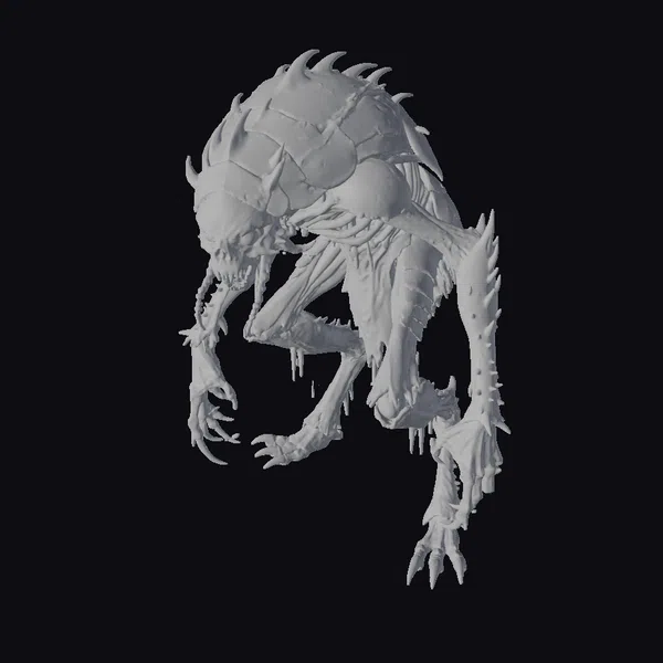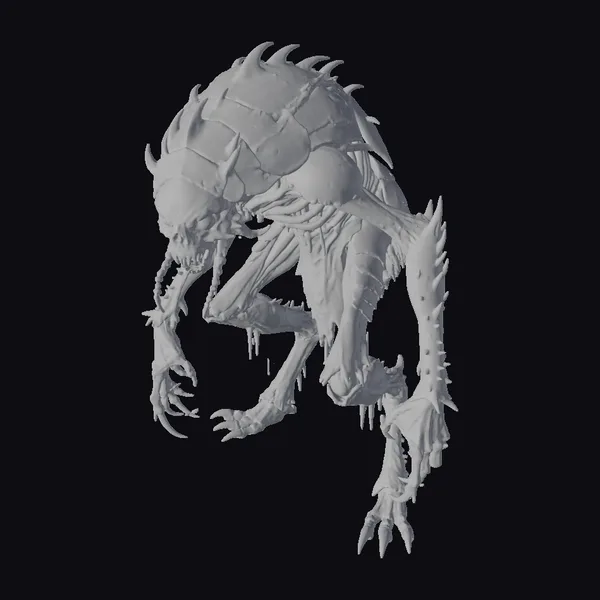 This ultra-realistic full-body ancient cockroach demon model showcases intricate details, from the glowing red eyes to the sharp, jagged claws. The emaciated body, covered in a spiky, armored shell with rusty red spots, seems to be a twisted fusion of cockroach and demonic features. The demon’s pose, with claws extended and mouth open, captures a moment of feral intensity. The model is perfect for use in horror-themed games, animations, or 3D printing projects. Its terrifying appearance is sure to evoke a sense of dread and unease.