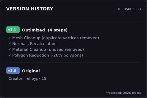 Further optimized in this latest version 1.1, this Very High Poly Premium 3D model is available immediately in GLB and STL file formats and can be purchased with licenses for both personal and commercial use.
