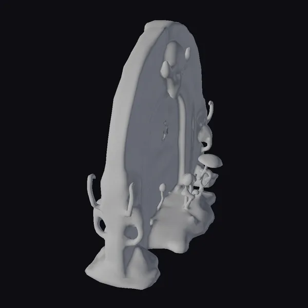Crafted with meticulous detail, this ancient demonic stone portal stands as a testament to dark fantasy architecture. The portal’s pose, with its arched top and glowing green interior, suggests a gateway to another realm. The textures are rich and varied, with intricate details on the skulls, mushrooms, and mysterious symbols etched into the stone. The lighting effects, particularly the electric green glow, add a sense of mystique and foreboding. This model would be perfect for use in games, 3D printing, VR/AR experiences, animation, or design projects seeking a touch of the macabre and fantastical.